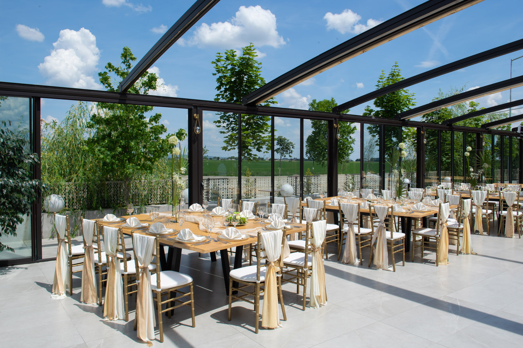 Lumina naturală pătrunzătoare creează un cadru desăvârșit pentru ceremonii romantice și petreceri pline de vitalitate.